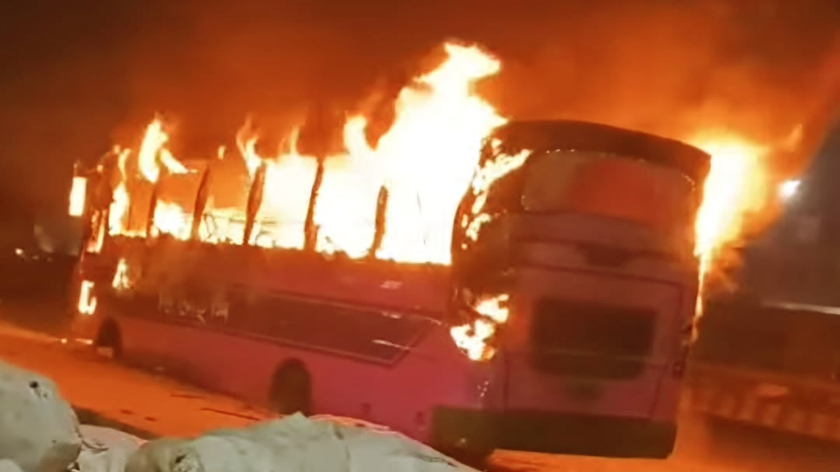 স্থানীয়রা এবং পুলিশ জানিয়েছে, চক্রবর্তী এলাকার জ্যোতি ফিলিং স্টেশনের কাছে রাস্তার ধারে একটি বাস দাঁড়িয়ে ছিল, যেখানে গাড়ির নীচে একজন মেকানিক কাজ করছিলেন। দুই যুবক মোটরসাইকেলে করে এসে বাসে পেট্রোল ঢেলে আগুন ধরিয়ে দেয় এবং দ্রুত ঘটনাস্থল থেকে পালিয়ে যায়।
