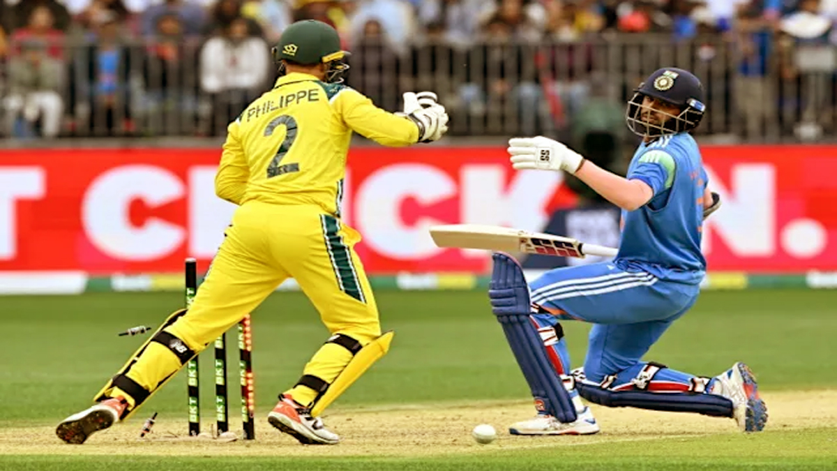 শ্রেয়স আইয়ার ফিলিপের হাতে বল তুলে দিলে হ্যাজেলউড তার দ্বিতীয় শিকারটি ধরেন, যার ফলে ভারতের রান ৪৫-৪।