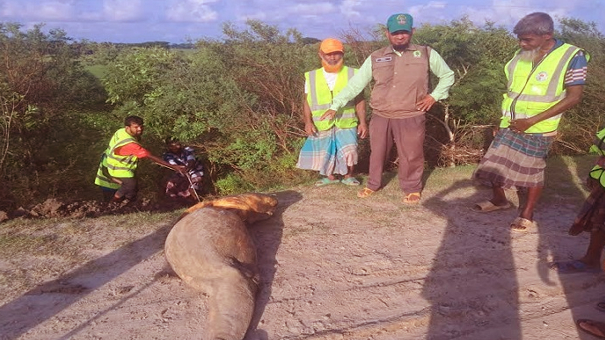 উপকূলীয় পরিবেশ সুরক্ষা আন্দোলনের সমন্বয়কারী কেএম বাচ্চু বলেন, ডলফিনের পুরো শরীরের চামড়া হারিয়ে গেছে, পচন ধরতে শুরু করেছে এবং দুর্গন্ধ ছড়াচ্ছে। ধারণা করা হচ্ছে ডলফিনটি দুই থেকে তিন দিন আগে মারা গেছে।