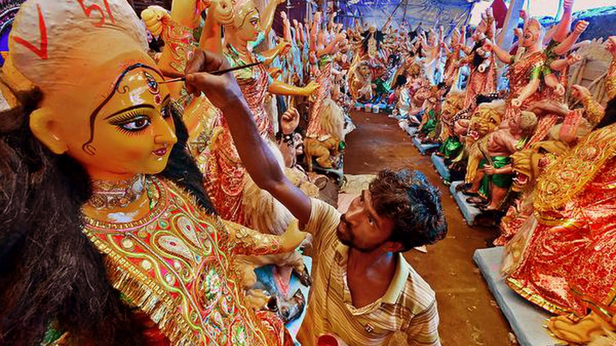 পুজোর আর মাত্র এক সপ্তাহ বাকি। প্রতিমাগুলো মণ্ডপে পৌঁছে দিতে হবে। কারিগররা ব্যস্ত, নানা রঙে প্রতিমাগুলোকে জীবন্ত করে তোলার জন্য অক্লান্ত পরিশ্রম করছেন – কেউ কেউ হাত রঙ করছেন, কেউ পা রঙ করছেন, আবার কেউ কেউ মুখ রঙ করার পর সাবধানে চোখ তৈরি করছেন। রঙ করার কাজ শেষ হয়ে গেলে, কেউ কেউ পোশাক পরছেন এবং প্রতিমায় অলংকার লাগাচ্ছেন। সদরঘাট এলাকায় অবস্থিত বেশ কয়েকটি প্রতিমা তৈরির স্থানে একই তীব্র তৎপরতা দেখা যাচ্ছে। প্রতিমা নির্মাতারা বলছেন যে এ বছর অনেক প্রতিমা তৈরি করা হয়েছে, যার মধ্যে উল্লেখযোগ্য সংখ্যক ইতিমধ্যেই মণ্ডপে সরবরাহ করা হয়েছে। “আমরা বৃহস্পতিবার এবং শুক্রবারের মধ্যে বাকি সমস্ত প্রতিমা পৌঁছে দেওয়ার প্রস্তুতি নিচ্ছি,” তারা বলছেন।