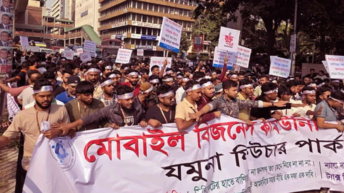 রাজধানীর বিভিন্ন শপিং মলের মোবাইল ফোন ব্যবসায়ীদের পাশাপাশি, দোকানের কর্মচারীরাও বিক্ষোভে যোগ দেন। মানববন্ধনে অংশ নেওয়ার সময় তারা তাদের দোকান বন্ধ রেখেছিলেন।