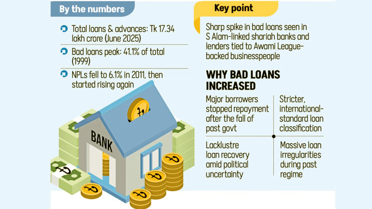 ব্যাংকাররা জানিয়েছেন, আওয়ামী লীগের সাড়ে ১৫ বছরের ক্ষমতায় থাকাকালীন ব্যাংকিং খাতে অনিয়ম, জালিয়াতি, জালিয়াতি এবং দুর্নীতি এতটাই ব্যাপক ছিল যে খেলাপি ঋণের উচ্চ হার এখন সেই বাস্তবতাকেই প্রতিফলিত করে।