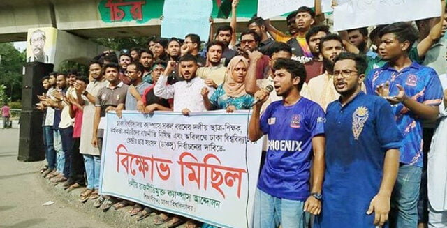 মঙ্গলবার (১৭ সেপ্টেম্বর) সকালে বিশ্ববিদ্যালয়ের কেন্দ্রীয় গ্রন্থাগারের সামনে একদল বিশ্ববিদ্যালয়ের শিক্ষার্থী জড়ো হয়ে মিছিলে হেঁটে টিএসসির রাজ ভাস্কর পর্যন্ত গিয়ে এ ঘোষণা দেন।